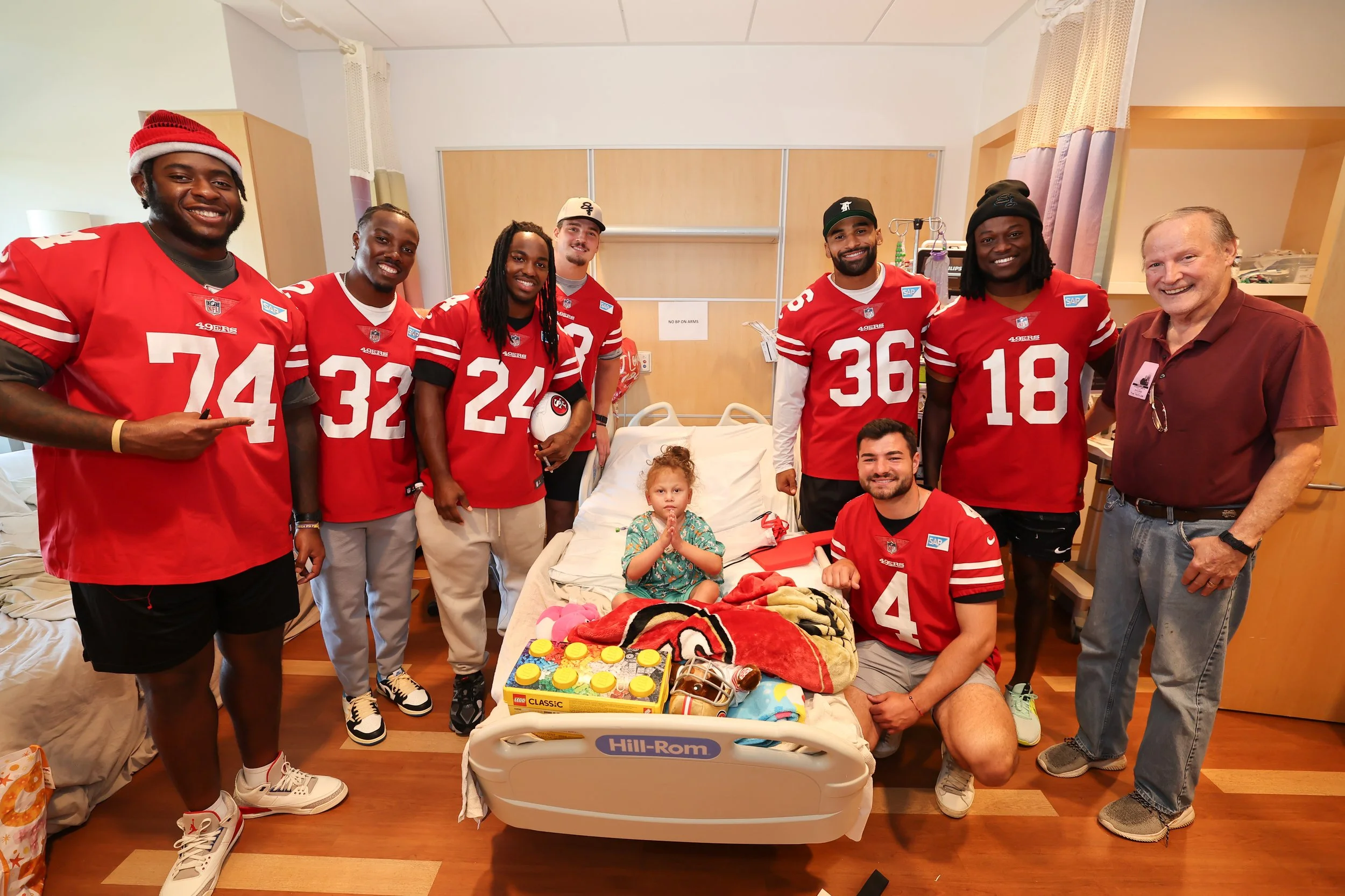 As part of the team’s health and wellness programming, the 49ers visited pediatric patients at a local children’s hospital. 13 players spent their weekly off day with patients and their families in their hospital rooms, delivering 49ers backpacks and blankets, playing board games and uplifting spirits during challenging times.